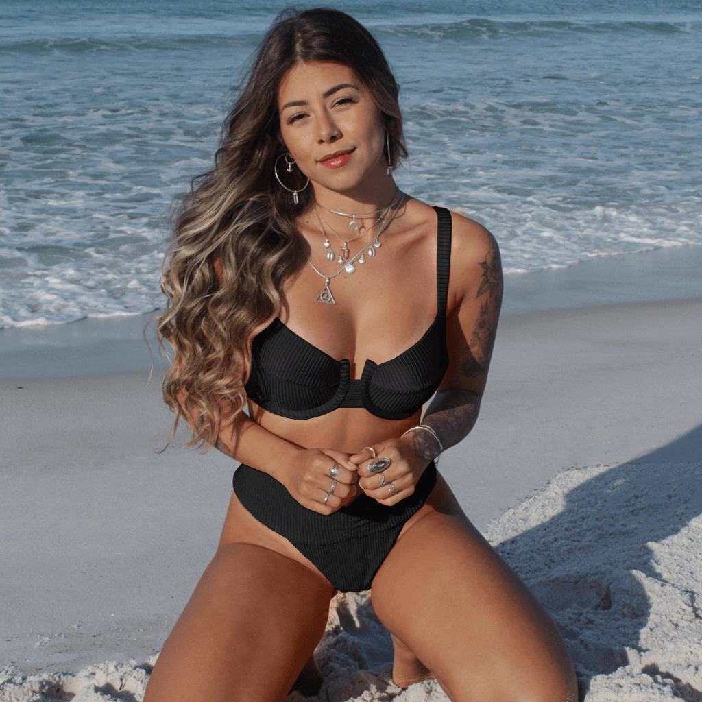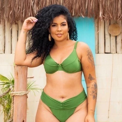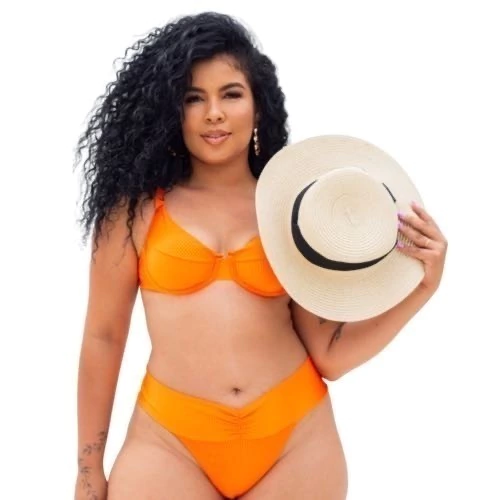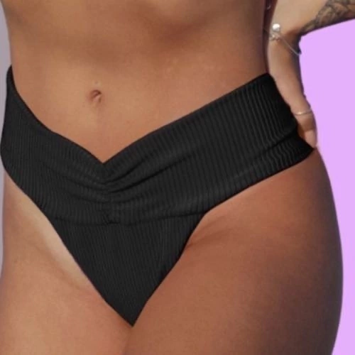 Nossa calcinha de biquíni efeito lipo é feita em tecido kotele Canelado.