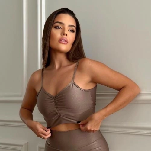 O top fitness franzido oferece conforto durante os exercícios. O franzido na frente cria um efeito de textura e ajuda a modelar a região do busto, conferindo um visual mais delicado e feminino.